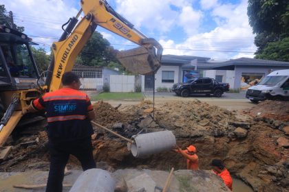Avançando com as ações de melhoria do sistema de drenagem na zona Leste, Prefeitura de Manaus, por meio da Secretaria Municipal de Infraestrutura (Seminf), realiza, nesta sexta-feira, 12/12, uma intervenção completa de recuperação da rede na rua 22, no bairro São José Operário, garantindo mais segurança e eficiência no escoamento das águas da chuva.